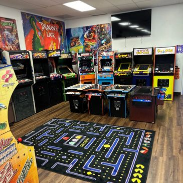 At Game Gallery, we offer a large selection of classic and modern arcade games to play, including Pac Man Battle Royale, Racing Games including Mario Kart, multicades with hundreds of classic games, Skee Ball, Air Hockey, Shuffle Bowling and more! You can also buy-sell-trade arcade games and Arcade1Up games for use in your home!