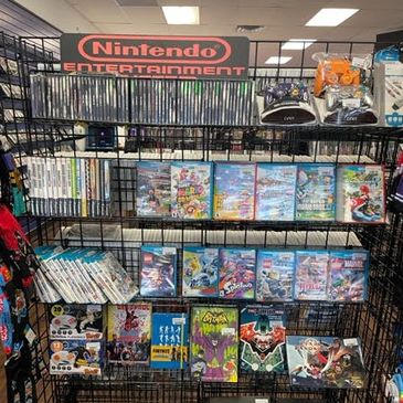 Here at Game Gallery we buy / sell / trade classic and modern working video game consoles, cartridges, controllers, accessories, as well as Blu-Ray movies. We also offer a fun selection of gaming merchandise including Amibos, plushies, etc.